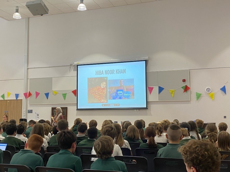 We were so excited to welcome Hiba Noor Khan to HMS on Tuesday afternoon. Hiba came to present her first novel, ‘Safiyyah’s War’, to Y5 and Y6. Y6 are reading ‘Safiyyah’s War’ during Book Talk in form time this term. This luminously-written book is based on the inspiring, and little-known, resistance work run by the Grand Mosque of Paris during WW2 to save the lives of hundreds of Jewish people. The story is full of courage, compassion and community. Hiba enthralled her audience with her love of reading, writing and the importance of keeping a notebook for all those random or late-night ideas! She reminded us how stories help us to understand each other and make the world a kinder place.