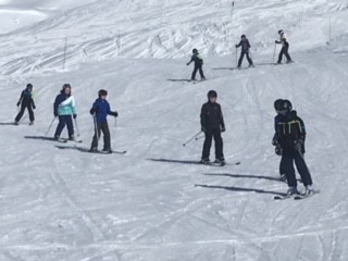Morning: Blue Sky Cruising. Beginners group had a great morning of cruising around the resort. We skied the slope that gives us problems earlier in the week with style and confidence. Everyone has made brilliant progress and can move confidently and relax and enjoy the spectacular environment.