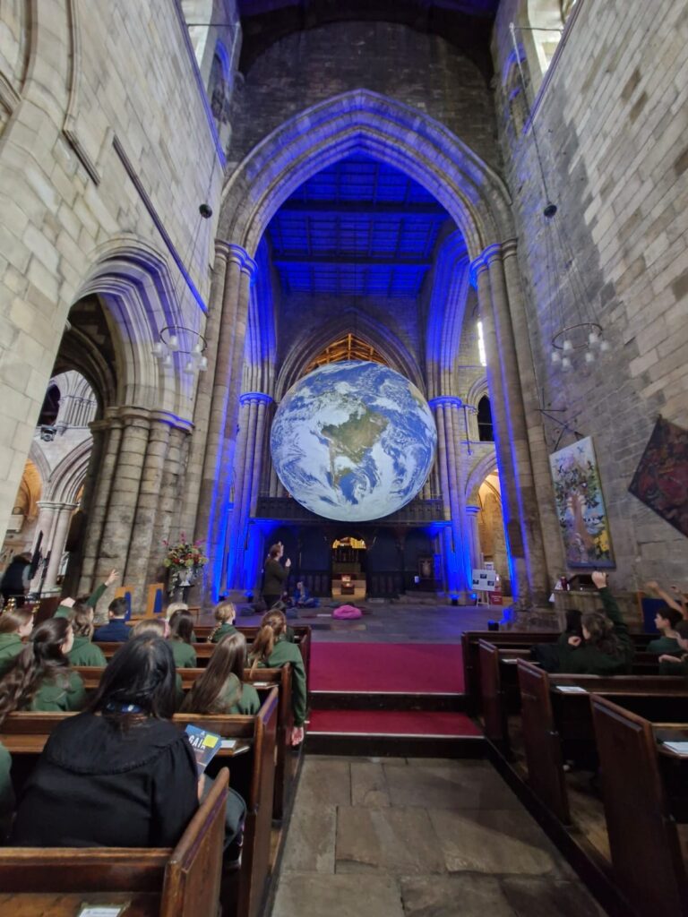 A group of Year 7 pupils were lucky enough to visit Gaia by Luke Jerram at Hexham Abbey this afternoon. The group enjoyed engaging with the Durham University Day and ‘The Average Scientist’ workshop. It was fantastic to see our pupils visiting this very special exhibition and we felt very fortunate to be part of it. It was an inspiring afternoon and gave pupils lots to think about and discuss.