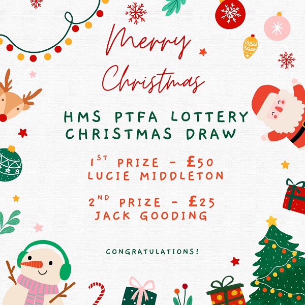The Big Christmas Draw has now been made and we can announce this month’s winners. Congratulations, Lucie and Jack – the PTFA will arrange for your winnings to be paid 🙂