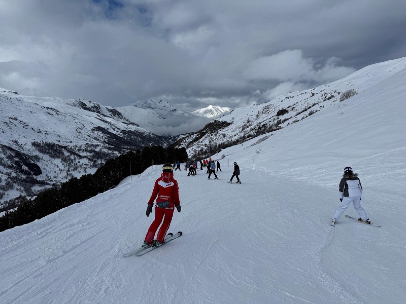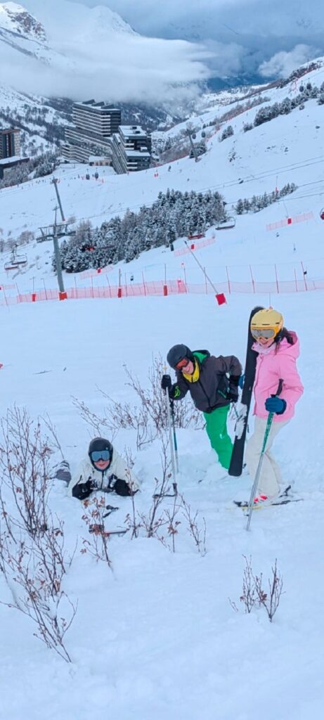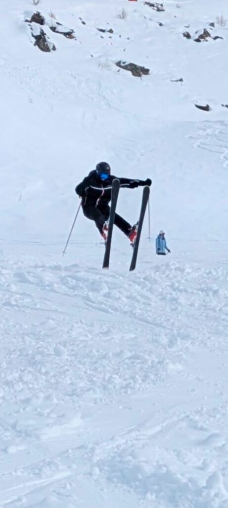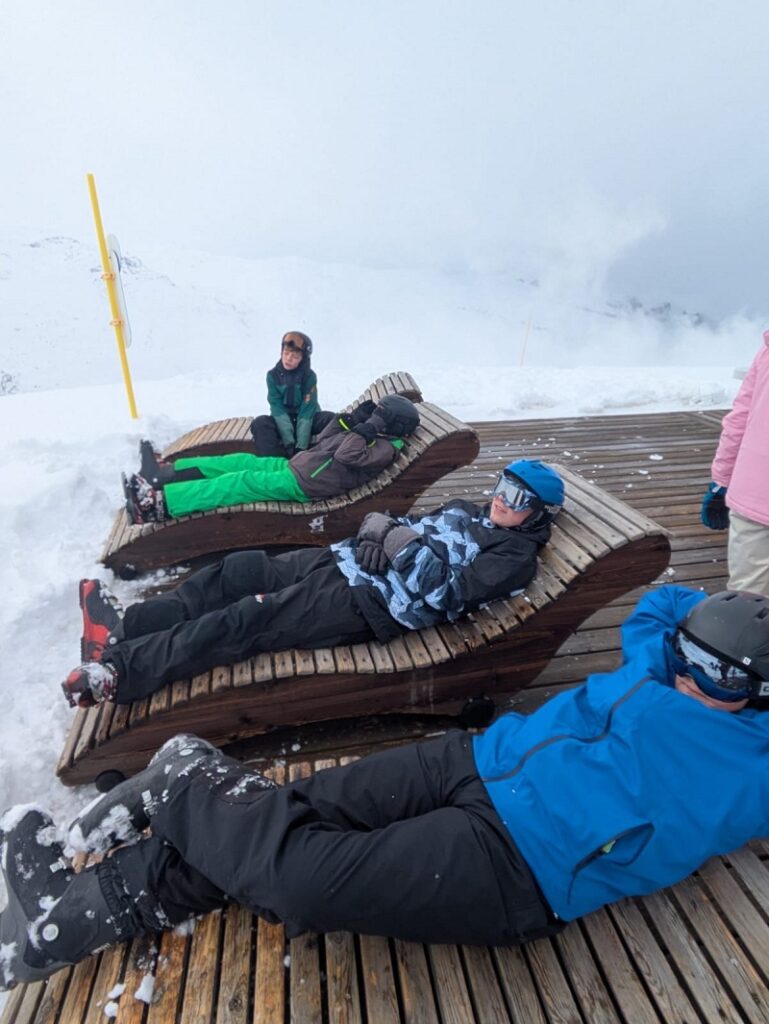 All groups ventured off piste and into the deep snow today. Mr Gaines’ group skied it smoothly and gracefully. Mr Whitfield’s group attacked it at ‘full gas’ and it was funny to watch how many people went splat! At some point in the afternoon, Mr Johnson’s group went jumping and he photographed a number of skiers in mid air – the pictures look great, yet the landings weren’t!