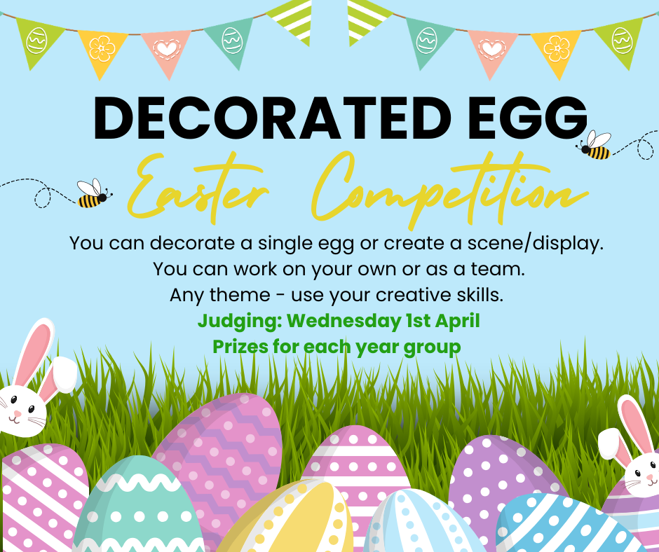 Entries need to be in school on Wednesday 1st April. Prizes up for grabs for each year group. Good luck!