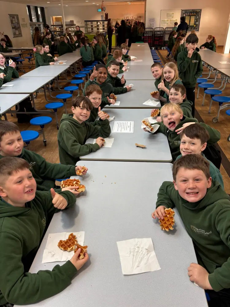 This week, our Year 6 pupils have had their ‘mock SATs’ – they have all worked so hard! This is a chance for them to run through the SATs week so that they are prepared for the assessments in May. We have been so proud of them all – their positive attitude has shone through loud and clear. They have all given it 100%! After assembly, pupils enjoyed a special treat of breakfast waffles and some free time outside in the sunshine after a very busy week!