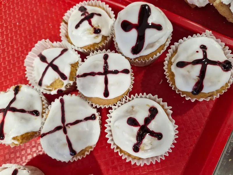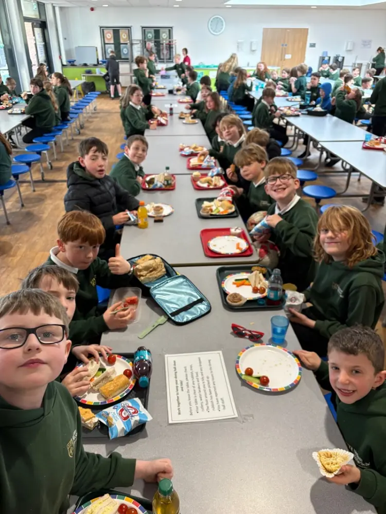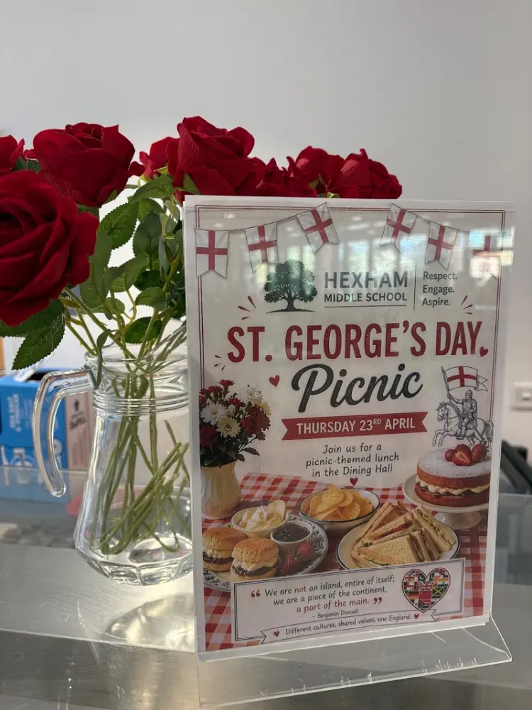 Thank you very much to Mrs Satow and her team for preparing our St George’s Day Picnic Lunch on Thursday last week. Our picnic themed lunches are always a hit! Pupils enjoyed a range of sandwiches, sausage/cheese rolls, cherry tomatoes and cucumber and a range of homemade cakes incl. a classic Victoria sponge. A lovely treat!