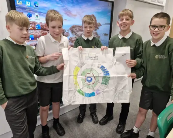 As part of our careers programme, a group of our brilliant Year 8 pupils are involved in a national competition to design a sustainable school. They have been working hard at lunchtimes and this week presented the first stage task to their employer mentors. The group were really prepared and representatives from MGM Construction and Carney Consultancy were very impressed
